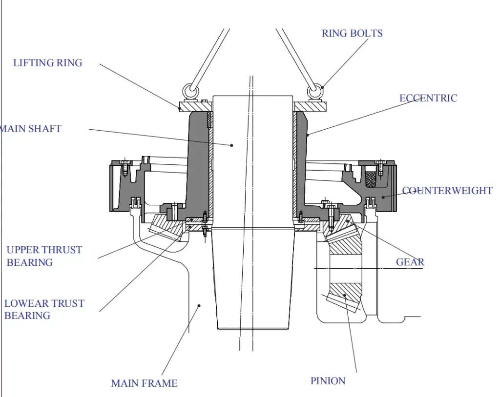 During each major overhaul or disassembly inspection, the crusher eccentric bushing must be checked for looseness. Looseness will cause uneven eccentric operation and accelerate wear.